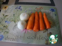 Пока рыба жарится, подготовим овощи. В оригинальном рецепте моркови используется 2 шт. Но мне особенно нравится в данном блюде именно морковь, поэтому я делаю побольше - 4шт. и 2 луковицы. |