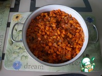 Морковь пассеровать на 7 ст. л. подсолнечного масла до мягкости. |