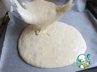 Берем форму 24 на 35 см. Застелим бумагой, выливаем светлое тесто. |
