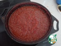Чистое томатное пюре вновь ставим на огонь для уваривания. |