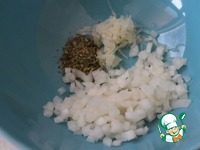 Добавить в миску орегано, чеснок, натертый на мелкой терке, лук, нарезанный мелкими кубиками. |