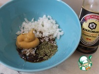 Затем горчицу и соевый соус, перемешать все вместе. |