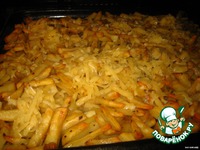 Перед тем как доставать, посыпаем сыром и даем ему расплавиться. |