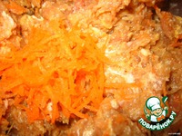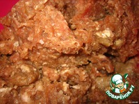 В фарш добавляем перемолотые лук, морковь, добавляем соль и перец по вкусу, перемешиваем. |