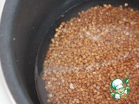 Промываем и варим, как указано на пачке с гречкой. Воды много не наливайте, она должна выкипеть. Гречку слегка не доварите, позже поймете, для чего. Если вода осталась, слейте |