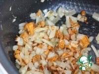 На сливочном масле обжарить лук до прозрачности и затем закинуть грибы и жарить минут 10-15, посолить и поперчить по вкусу. |