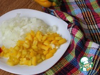 Мелко нарезать репчатый лук, болгарский и жгучий перец |