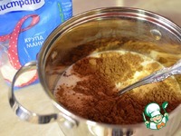 Какао-порошок и хорошо перемешиваем венчиком. После чего ставим на огонь и варим кашу. Каша должна получиться не очень жидкая, но и не густая. |