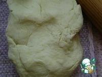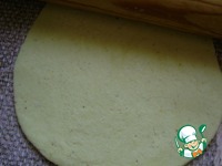 Вымесить, чуть подсыпая пшеничную муку. Тесто очень эластичное и мягкое, слегка липнет к скалке, но протрите ее мукой – и спокойно раскатаете. |