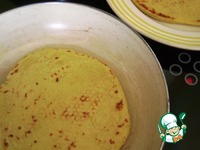 Печь на раскаленной сухой сковороде по минутке с каждой стороны. Готовые складывать стопкой и накрывать полотенцем. |