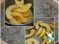 И быстро, чтобы айва не успела потемнеть, подержим дольки в кипящей воде. Недолго. Не больше минуты. Я потом высыпал дольки на плоское сито, чтобы лишняя вода стекла. Типа обсушить слегка надо. |