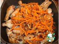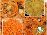 В том же масле обжарим лук. Вернее не обжарим, а скорее припустим … до полупрозрачности. Потом в сковороду отправляется морковка, и тушим … до полуготовности моркови. |