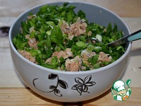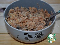 Начинка. Рыбу, предварительно слив жидкость из банки, размять вилкой. |