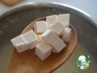Фету нарежьте кубиками. Половину сыра добавьте в кашу. |