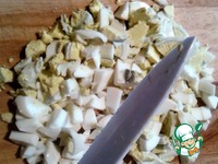 Лук почистить и мелко нарезать. Чтобы лук не горчил в салате его достаточно несколько минут подержать в кипятке и затем промыть холодной водой. |