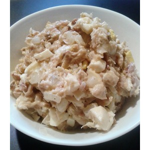 Описание: Не сложный в приготовлении, вкусный и легкий салатик. Для приготовления подойдет любая белая рыба горячего копчения: зубатка, треска, терпуг.