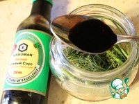 Сверху рыбы положить веточки укропа, добавить соевый соус. |