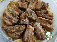 Описание: Свиные ребрышки с капустой - беспроигрышный классический вариант для вкусного и сытного ужина или обеда. Предлагаю вам свой вариант с добавлением моченых слив и сыра. Это будет почти торт... мясной торт!