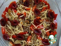 Верх присыпаем оставшимся сыром и раскладываем половинки маринованных слив. Запекаем при 180 градусах 20-30 минут, если останется лишняя влага, можно увеличить время запекания. |