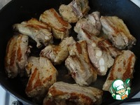 Обжариваем ребра на сухой сковороде с антипригарным покрытием. |