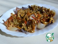 Баклажан и перец почистить от шкурки, изрубить произвольно. |