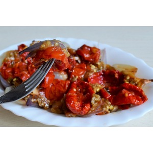 Описание: Имея в арсенале печеные овощи можно быстро соорудить вкуснейшее блюдо, а уж с вялеными томатами - тем более.