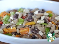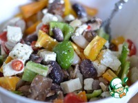 В миске смешать фасоль, болгарский и чили перцы, шампиньоны, сыр, тимьян. Перемешать. |