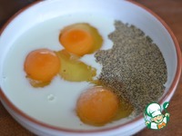 В отдельной миске смешать молоко, 3 яйца, соль и перец |