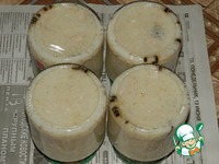 В чистые сухие банки положить по 4-5 штучек чёрного перца горошком, разложить кашу по банкам, слегка приминая и не докладывая до края 1,5 см. Если немного каши останется, то можно её скушать на ужин. |