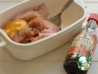 К фаршу добавить яйцо, соевый соус, чеснок и перец |