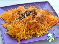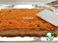 Сверху выложить морковную начинку, разровнять и немного придавить |