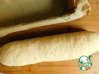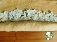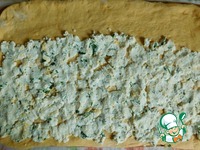 Заворачиваем рулет, начиная с широкой стороны прямоугольника. Рулет делаем не слишком тугой - тесто во время расстойки будет увеличиваться в объёме. |