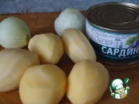 Основные продукты. Я взяла 2 луковицы, потому что они очень маленькие. Картофель и лук очистить. |