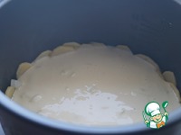 Залить заготовку пирога. Включить режим ВЫПЕЧКА на 60 минут. После сигнала остужаем до тёплого состояния не вынимая из мультиварки. |