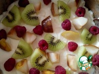 Выкладываем 1/3 крема, сверху фрукты и ягоды. |