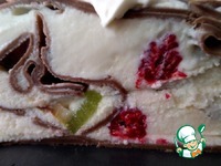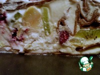 Убрать торт в холодильник на 2 часа, лучше на ночь. Украсить по желанию. У меня план по украшению торта не вышел, так как муж съел киви и оставшиеся груши, малину удалось спасти. |