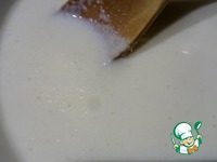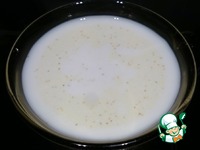 В стакан высыпается манная крупа и заливается молоком. Ей надо дать постоять несколько минут для того, чтобы она разбухла, впитывая часть молока. Это не даст образовываться комочкам при варке. |