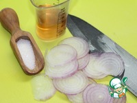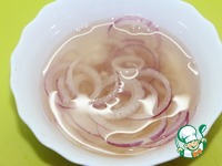 Лук очистить, порезать кольцами или полукольцами. Замариновать в смеси воды, яблочного уксуса и сахара. |