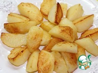 Раскалить растительное масло на сковороде и быстро обжарить картофельные ломтики до румяной корочки. |