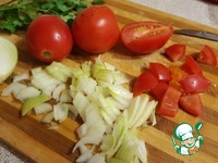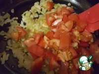 Обжарить лук и добавить к нему помидор, тушить минут 3-5 |