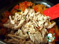 ... добавить мясо к помидорам, добавить соль, перец по вкусу, перемешать и тушить минутки 3 |