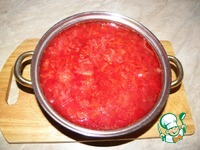 Затем добавляем томаты с маслом и сахаром. выжимаем лимонный сок (по вкусу), не более половины 1 шт, доливаем оставшуюся воду, проверяем на специи |