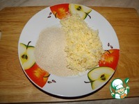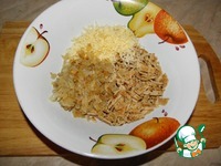 Смешать половину сыра, нарезанные блины и остывший лук |