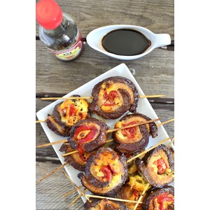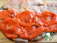 Перец почистить от кожуры и семечек и замариновать в 1 столовой ложке соевого соуса "Киккоман" |