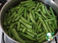 Болгарский перец очистить от семян и нарезать на крупные кусочки. Бланшировать в отдельной посуде 1 минуту, затем погрузить в холодную воду для остывания. Воду слить. |