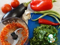 Очищенный чеснок и горький перец измельчить удобным способом, я измельчаю в блендере. Кинзу перебрать, помыть и нарезать. Если не любите кинзу, можете заменить ее на петрушку. |