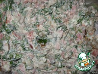 Муку, соль, растительное масло, разрыхлитель. Хорошо перемешиваем. Тесто получается как густая сметана. |