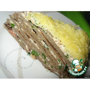 Описание: У всех есть свой любимый рецептик закусочного тортика из печени. Предлагаю свой вариант. Коржики-блинчики по этому рецепту получаются очень нежными и тающими во рту. А с такой начинкой-это что-то...