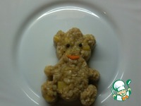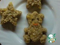 Кидаем яблоко и банан в сковороду, добавляем сахар и немного сока лимона, карамелизируем. Перемешиваем кашку с карамелизированными фруктами и начинаем формировать фигурки |