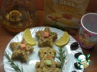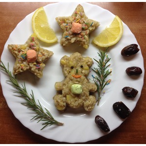Украшаем веточками розмарина, лимоном, сахарными конфетками и финиками. Готово |